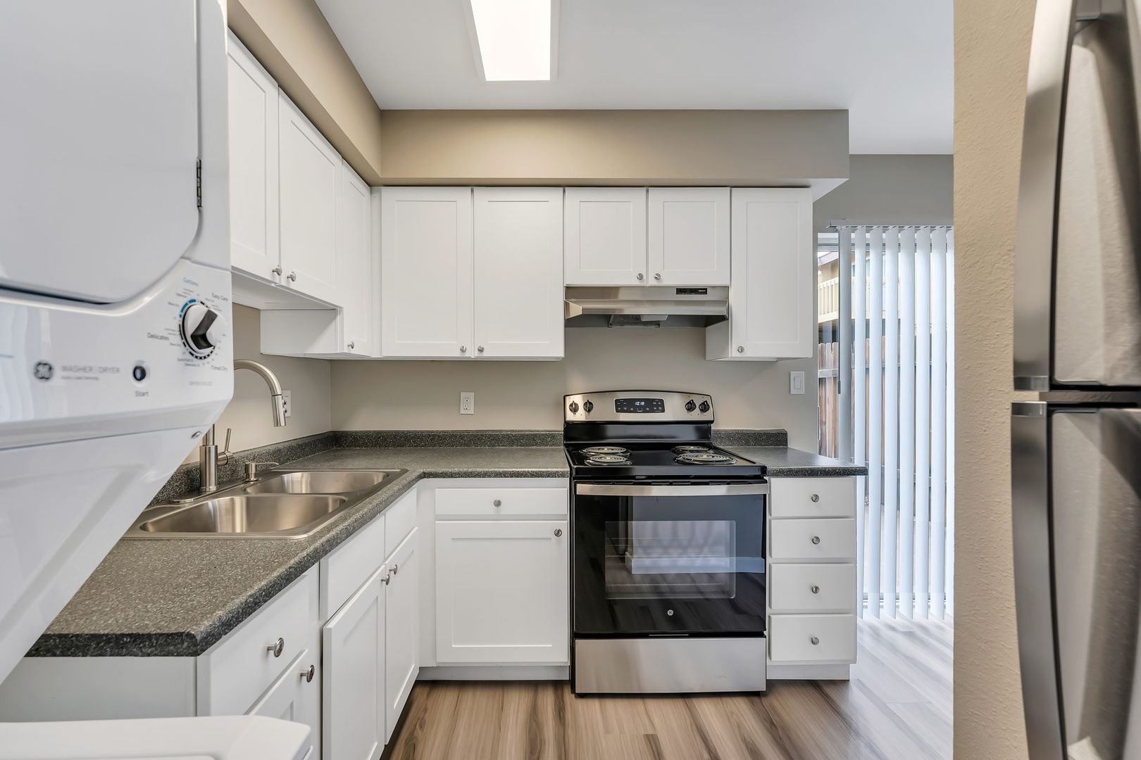Renovated 2-bedroom 1.5-bathroom townhome ready for move in. This beautiful apartment has a washer and dryer in unit, stainless steel appliances and plank flooring. The two-story apartment offers an open living area on the first floor with a 1/2 bath and two spacious bedrooms upstairs with a full bathroom. It also has a private patio off of the living area. The community has a pool, assigned off street parking and is centrally located across from the Washoe County Golf Course.