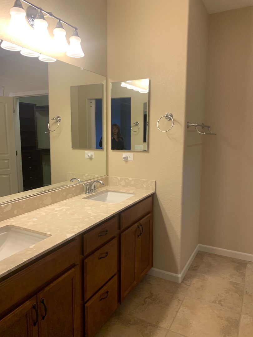 Be welcomed into a beautiful home with tall ceilings and a great kitchen that overlooks both the dining and living space. Walk through the sliding glass doors into a cozy backyard. Throughout the house, you will find the spacious bedrooms and upgraded bathrooms as well as a 2 car garage. The master suite has 2 sink vanities as well as a spacious shower. The home also offers washer and dryer hookups.