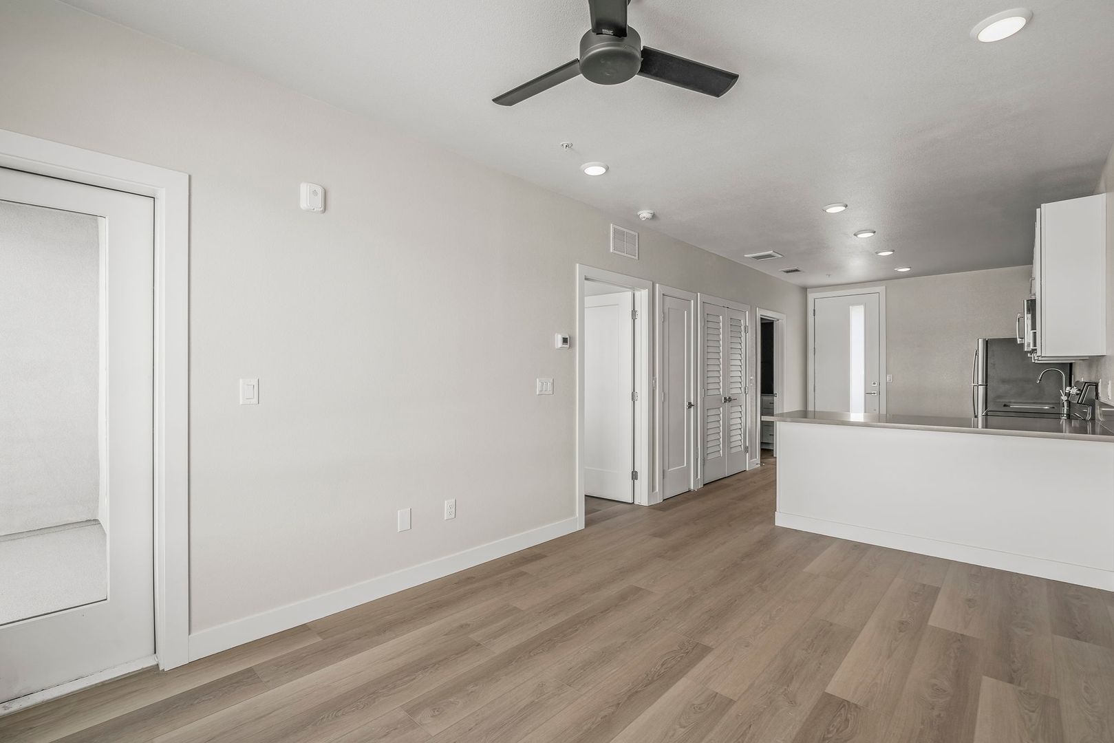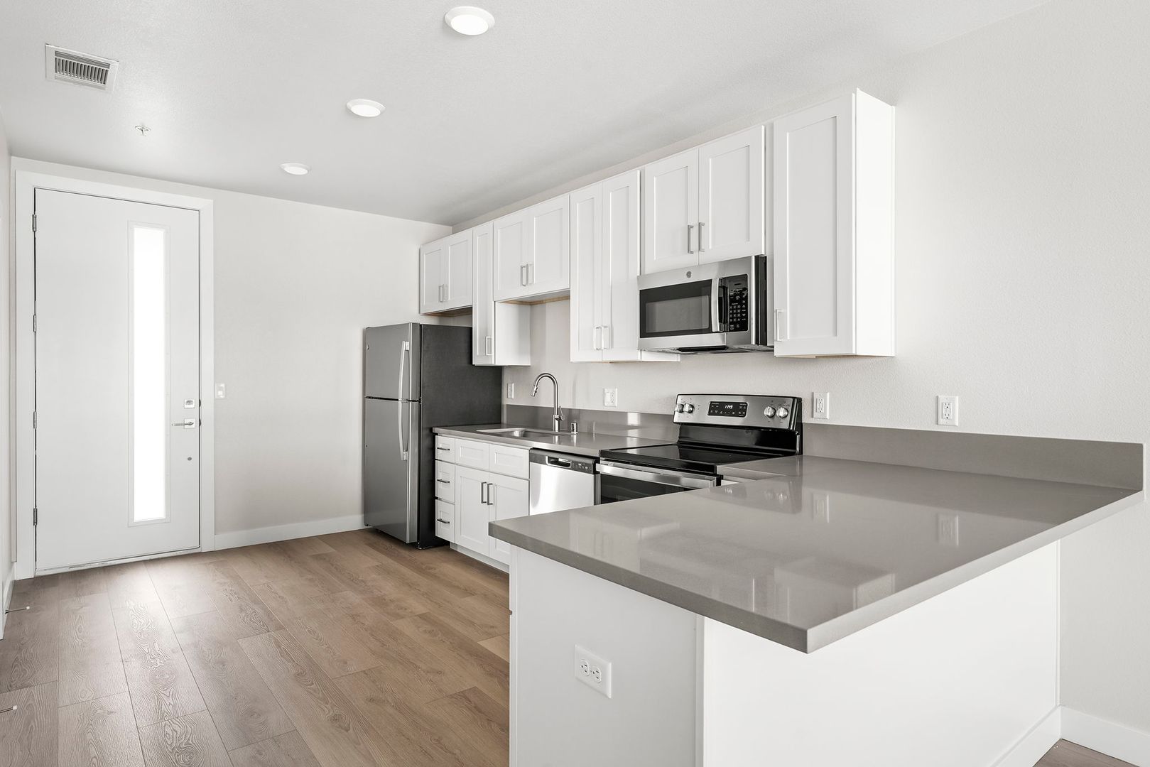 This well designed apartment home offers ample living space, a private balcony, and the convenience of an in unit washer and dryer. Enjoy the spacious kitchen with built-in quartz countertop dining, white cabinets and stainless-steel appliances. Modern features include 9ft ceilings, an oversized walk-in closet, ceiling fans, luxury vinyl plank flooring and a full tiled shower. The building is equipped with lightning fast Instant On AT&T Fiber internet service. Whether you're entertaining guests or simply enjoying a quiet evening at home, this apartment provides the ideal setting for your lifestyle. Conveniently located near the Truckee River, Idlewild Park and numerous restaurants and shops, you will have access to all Reno has to offer. Don't miss out on the opportunity to make this apartment your new home.